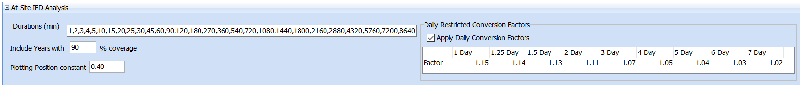 The At-Site IFD settings include settings used by the tools in the At-Site IFD tab. These include: