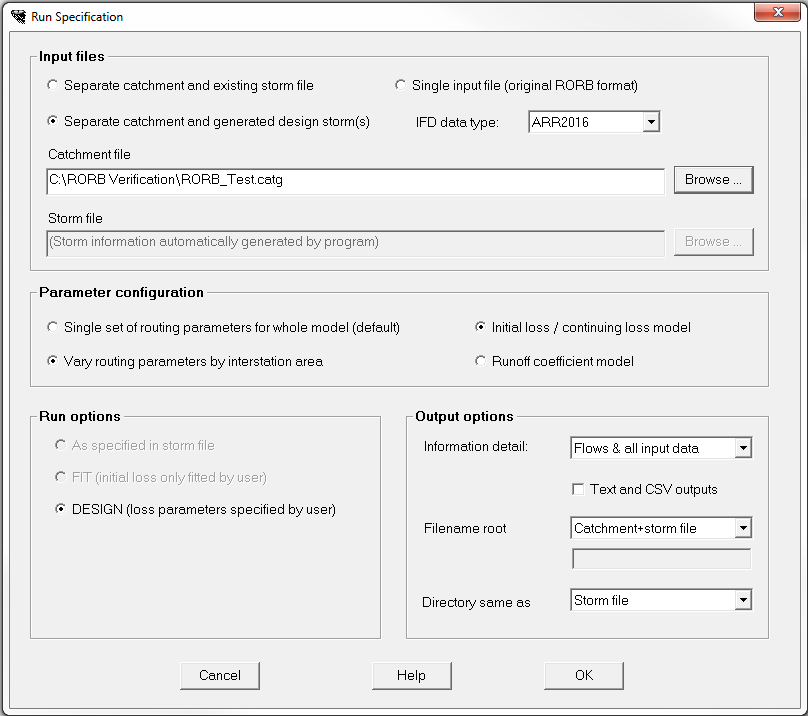 At this point RORB can be run and a Text or Plot output generated.