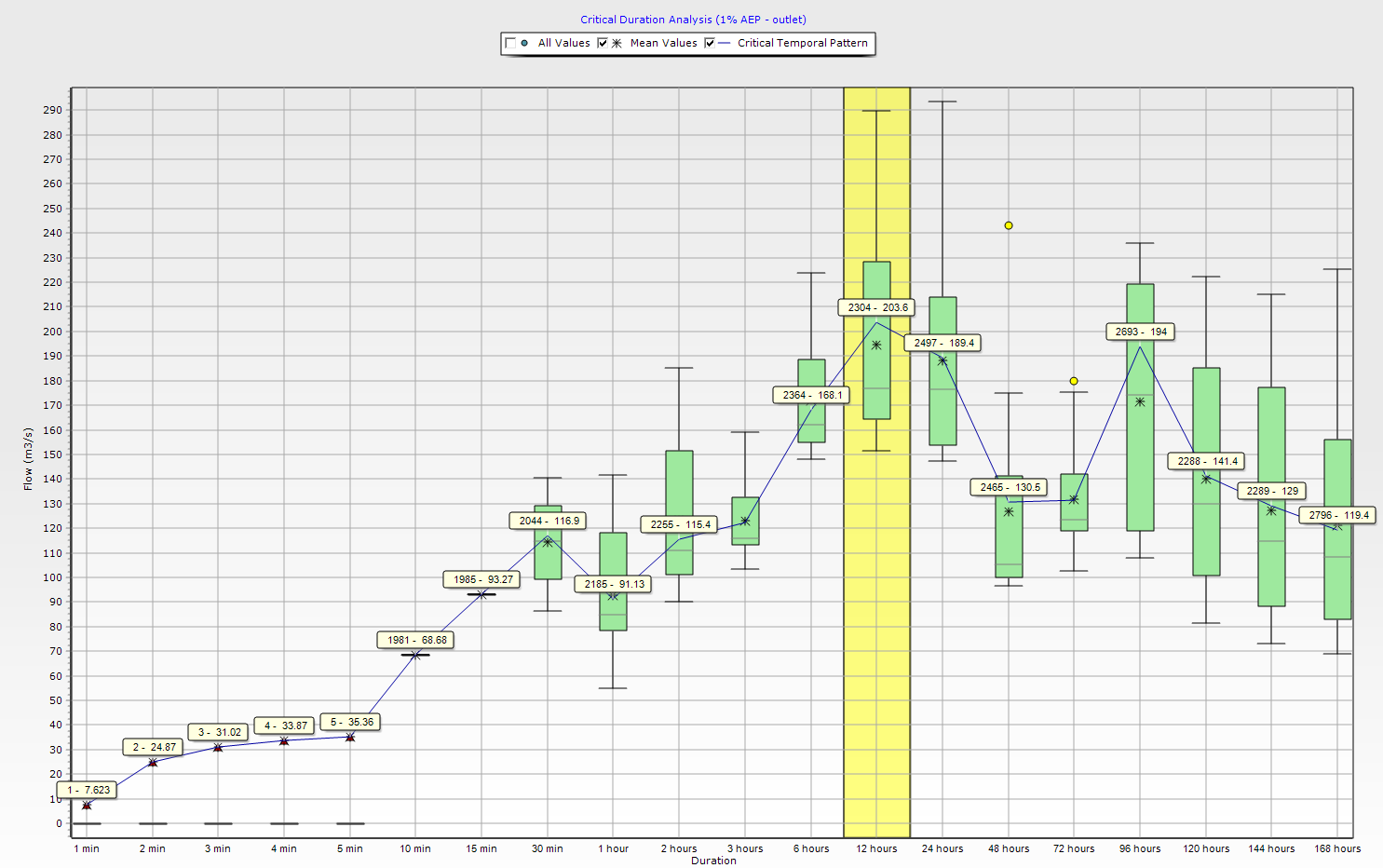 Storm Injector identifies the 12 hour storm as being critical.